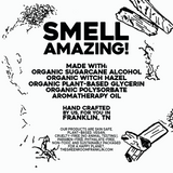 Ingredients: Organic Witch Hazel, Organic Sugarcane Alcohol, Polysorbate 80, Organic Plant-Based Glycerin & Aromatherapy oil