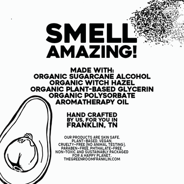 Ingredients: Organic Witch Hazel, Organic Sugarcane, Alcohol, Polysorbate 80, Organic Plant-Based Glycerin & Aromatherapy oil