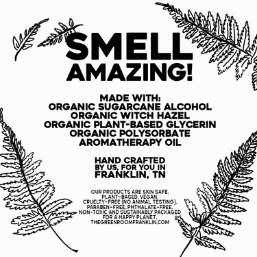 Ingredients: Organic Witch Hazel, Organic Sugarcane, Alcohol, Polysorbate 80, Organic Plant-Based Glycerin & Aromatherapy oil