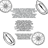 Organic Lemon Essential Oil: Contains anti-inflammatory and anti-bacterial properties which help clarify, lighten and brighten your skin. It's aromatherapy properties help reduce your stress and boost your mood.